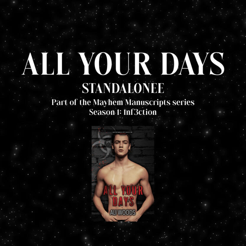 When he’s assigned to my team for a supply run to a neighbouring outpost, I’m faced with my darkest nightmares and deepest fears. And I might just find that there is one thing worse than losing him, and that’s never having him at all.All Your Days is a full-length MM dark dystopian romance as part of the 1nf3ction shared world collab. Each book is a standalone containing themes and situations not intended for readers under the age of 18. Both characters are consenting adults.