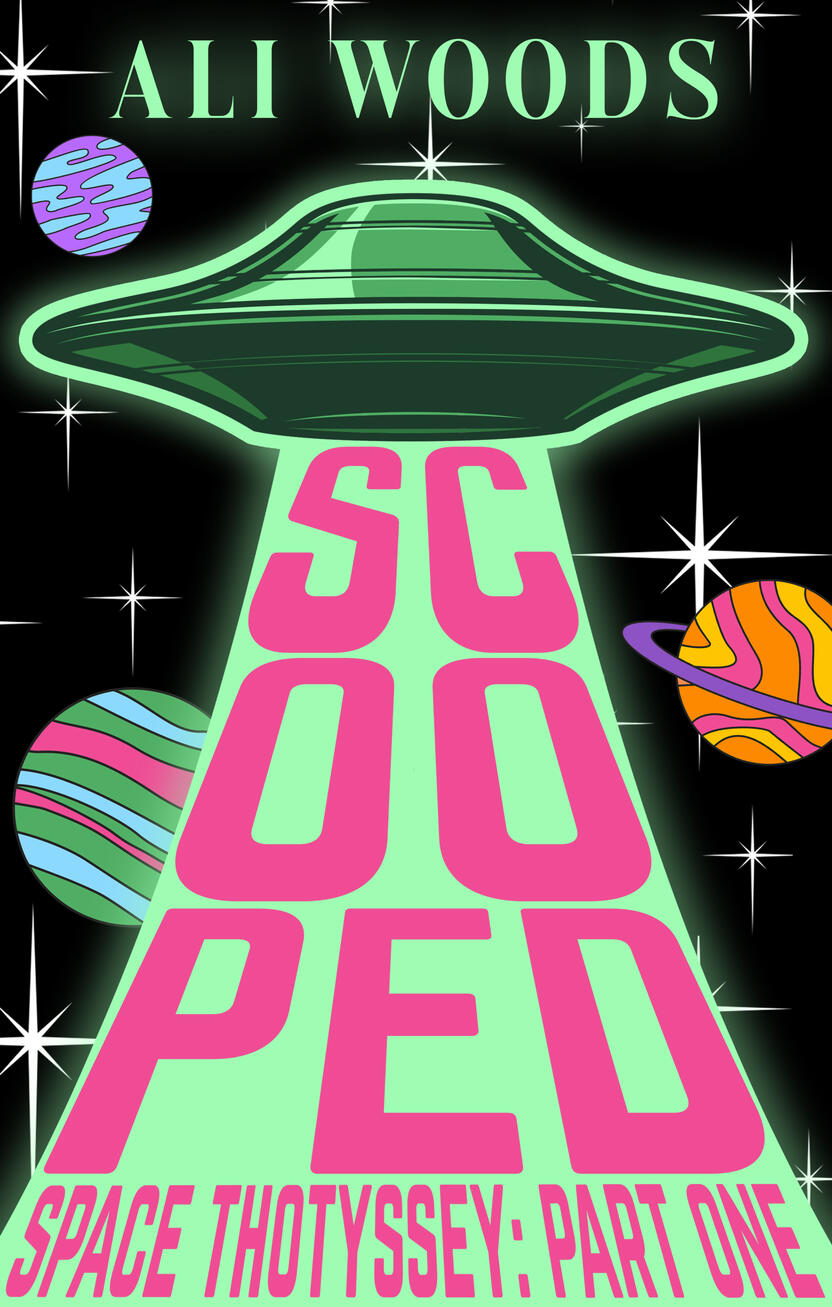 Scooped is a 22,000 word sweet & spicy novella set in space. Not intended to be taken anyway seriously, it’s about an alien from a planet without the concept of gender and a woman more than willing to try new things in space.